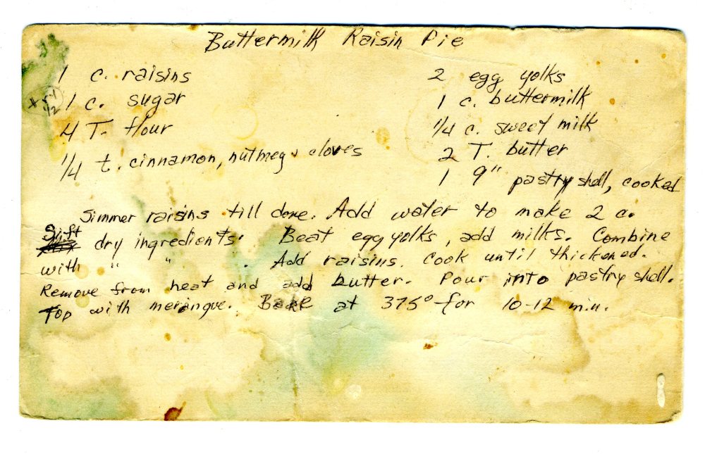 My mother’s been sure to pass these habits down: growing up, we could finish close to a gallon of milk a day in our house and Mom never bought  processed convenience foods, definitely not pop or overly sweetened or salty snacks. Here’s an example of a farm recipe – it’s in my mother’s handwriting, so I know it should have all the ingredients listed. As you can see, it’s been well used: