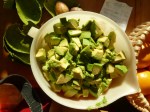 - 3 ripe Haas avacados, cut into 1/2″ cubes